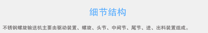 不鏽鋼螺旋輸送機主要由驅動裝置、螺旋、頭節、中間節、尾節、進、出料裝置組成。