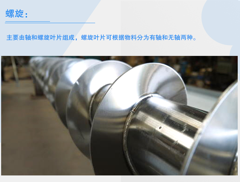 螺旋:主要由軸和螺旋葉片組成,螺旋葉片可根據物料分爲有軸和無軸兩種。