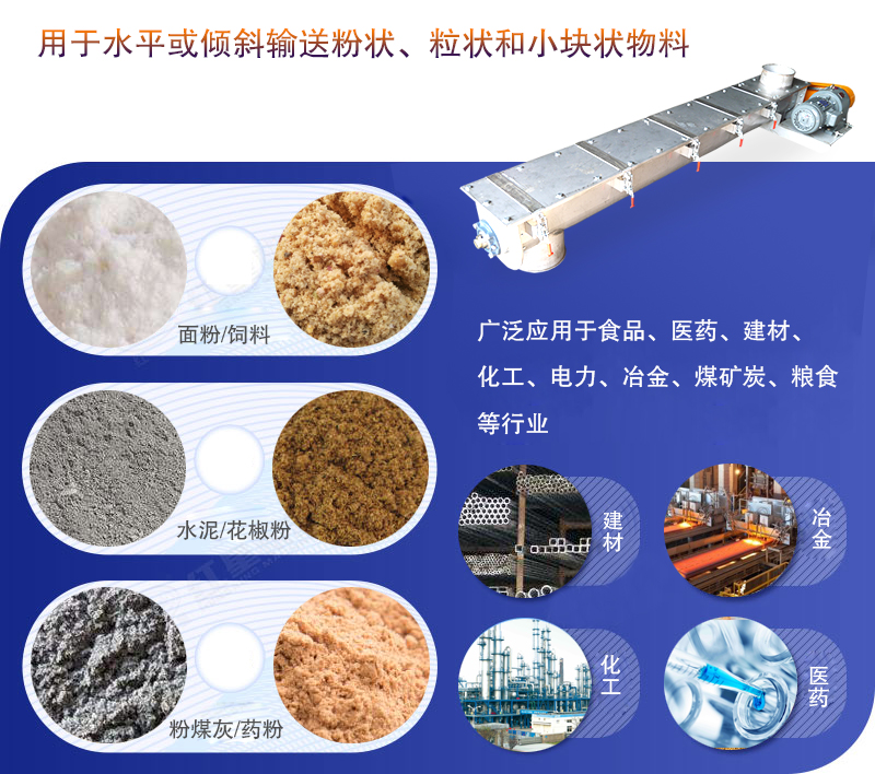 不鏽鋼螺旋輸送機廣泛應用于食品、醫藥、建材、化工、電力、冶金、煤礦炭、糧食等行業,适用于水平或傾斜輸送粉狀、粒狀和小塊狀物料,尤其适合食品、醫藥行業,可以滿足行業衛生标準,可輸送諸如面粉、飼料、花椒粉、藥粉等對衛生要求嚴格的物料。